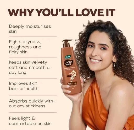 Joy Intense Nourishing Body Lotion with Cocoa & Shea Butter ensures 24 hour skin softness. Specially formulated with pure cocoa butter to offer extra-rich nourishment to the skin with a long lasting effect. Cocoa Butter helps nourish the deepest layers, keeping skin firm and healthy. Luxuriously creamy Shea Butter leaves skin soft and glowing with health. Skin feels smoother, younger and radiant.